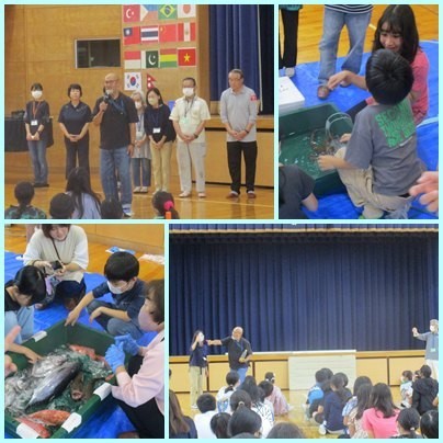 本日、456年生を対象に、魚ギョぎょ体験を行いました。実際に漁師さんに来てもらい、生の魚や本物の竿などを見せてもらいました。その後はグループに分かれて、魚に関するカルタ取りゲームやかつお節の削り体験、魚釣り体験などを行い、本物に触れながら、漁業について楽しく学ぶことができました。この魚ギョぎょ体験で学んだこと、そして、自分たちができることについて後日、各クラスで話し合っていきたいと思います。子どもたちにとってはとても貴重な体験となりました。朝早くから来てくださった漁師さん、お手伝いしてくださったPTAの方々、地域ボランティアの方々、本当にありがとうございました。