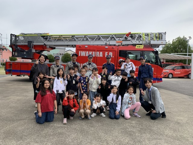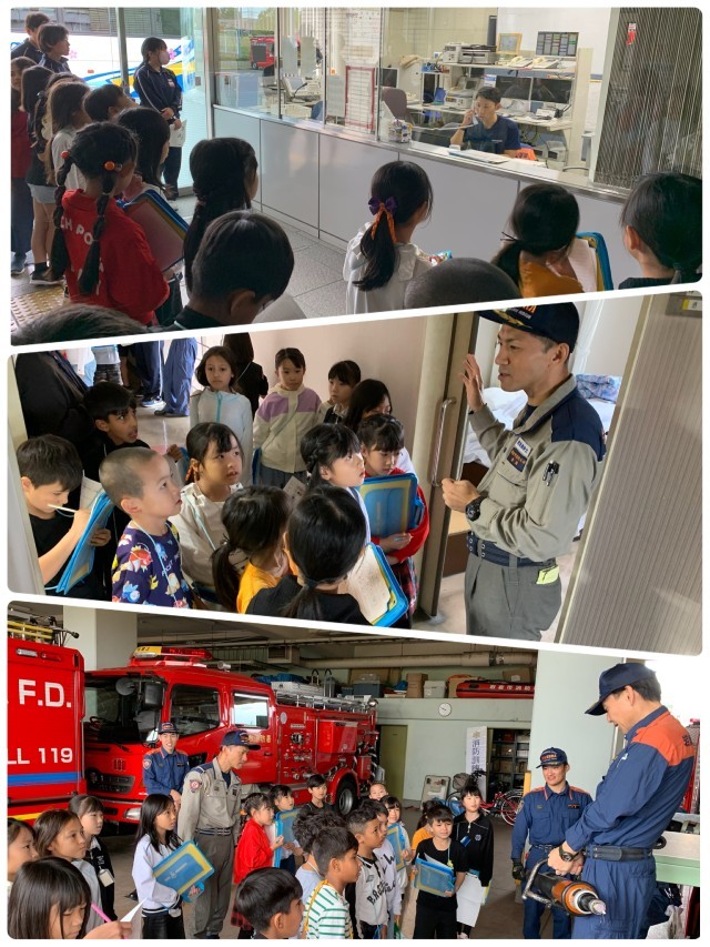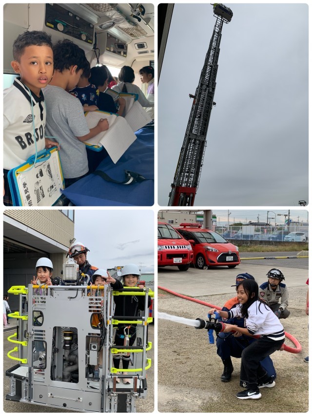 消防士の仕事や施設の説明を真剣な表情で聞いていました。放水体験やはしご車体験もあり、みんなの目が輝いていました。