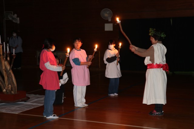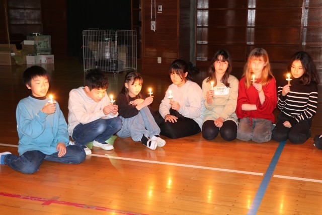 雨天のため集会場でキャンドルサービスを行いました。