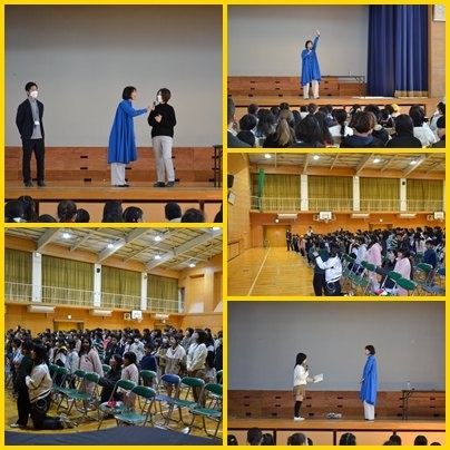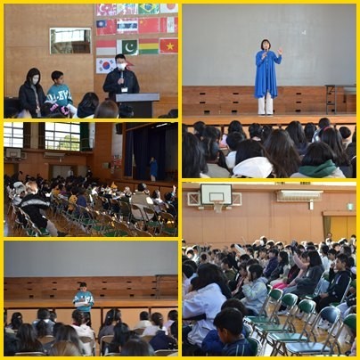 最後に全校で玉城さんに感謝の気持ちを込めて「また明日ね」を歌いました。玉城さんから教えていただいたこと、心に響いたことをこれからの学校生活に生かしてがんばっていきましょう。玉城さん、貴重なお話を聴かせていただき、本当にありがとうございました。