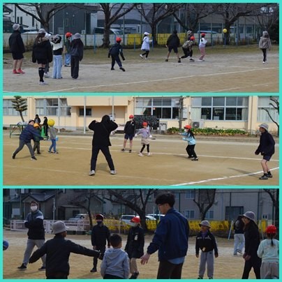 今日の長放課にたてわり遊びを行いました。毎日のようにたてわり掃除をしている異学年の友達と一緒に、鬼ごっこやドッジボール、だるまさんがころんだなどをして、どのグループも楽しく遊ぶことができました。