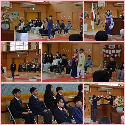 今日は卒業式でした。卒業生24名が全員揃って式に参加することができました。校長先生のお話、消防長さんのお話、担任の先生のお話からは「自分らしく」「仲間」「挑戦」といったキーワードが出て、前向きに頑張ってほしいといったメッセージが送られました。一人一人が堂々と歩く姿や将来の夢のスピーチ、呼びかけ、歌など、全てがりっぱで素晴らしかったです。在校生も卒業生の気持ちに応えるように歌や呼びかけで感謝を伝えました。その姿を見て、会場が感動に包まれました。最後は在校生、職員、保護者でアーチを作り、卒業生をみんなで送り出すことができました。4月から始まる中学校生活は期待に胸を膨らませる一方で、不安な気持ちもあると思います。きっと思うようにいかなかったり、時には壁にぶつかったりすることもあるでしょう。そのような時には、東小で学んだことを思い返してください。そして、信頼できる仲間と助け合いながら、困難を乗り越えていってほしいです。そして、将来の夢や目標に向かっていろいろな事にチャレンジしながら楽しい中学校生活を送ってください。最後になりますが、保護者の皆様、本日はお子様のご卒業、誠におめでとうございます。今日という日を迎えられたのは、保護者の方のご理解とご協力のおかげです。職員一同、心から感謝申し上げます。本当にありがとうございました。