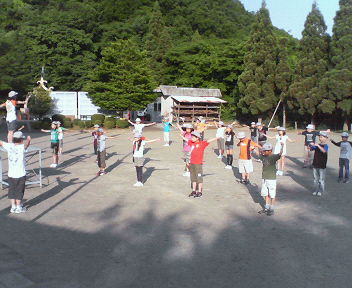 ラジオ体操をしています。
