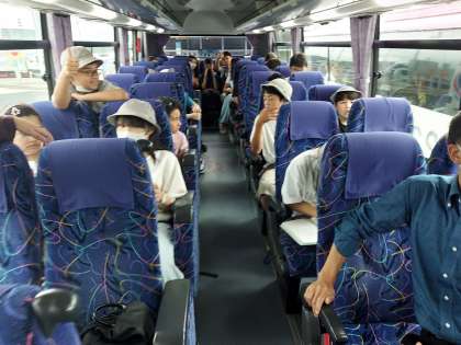 いよいよお楽しみのバスレクが始まります。みんな司会者に注目しています。
