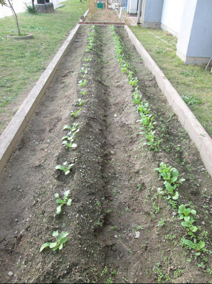 2年生の畑の大根の葉が育ってきました。大きく大きく育つよう見守ります。