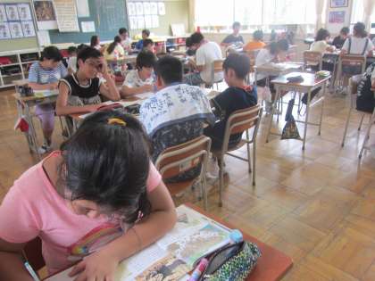 個人でまとめている子、グループで取り組んでいる子、先生といっしょに学んでいる子などいろいろな方法で学んでいました。