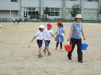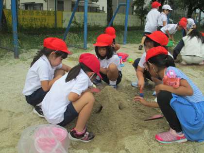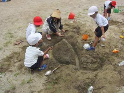 山を作ったり、川を作ったり、トンネルを掘ったりして遊びました。