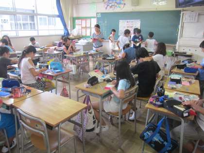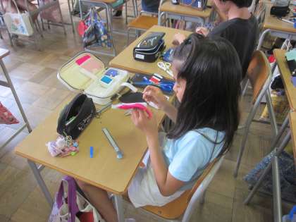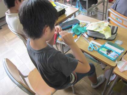 5年生が家庭科の授業で裁縫に取り組んでいました。