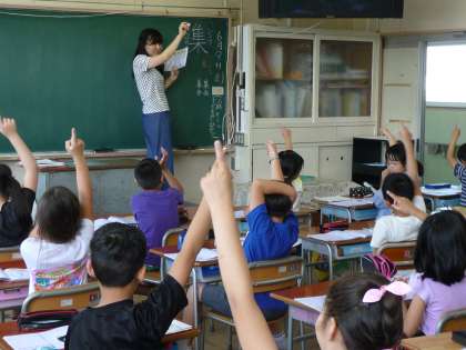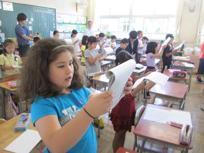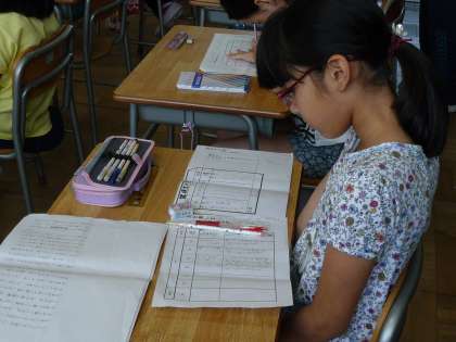 国語で音読、漢字ドリル、説明文の読み取りのモジュール形式の授業でした。