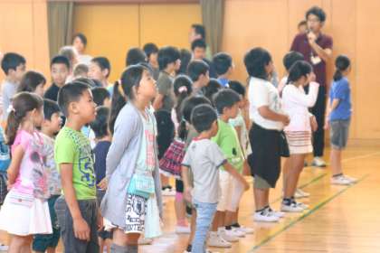 その後、全校で「ふるさと」を歌いました。