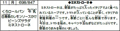 給食献立表(給食センター)