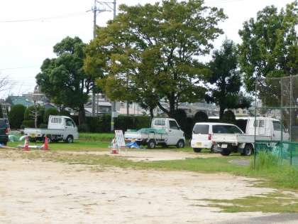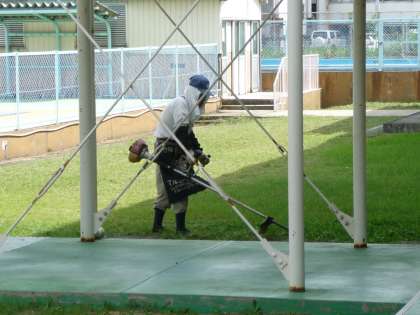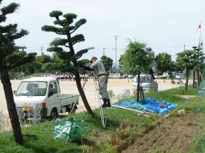 シルバー人材センターからたくさんのかたに来ていただいて、木の剪定と草刈りをしてもらっています。
