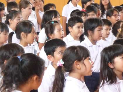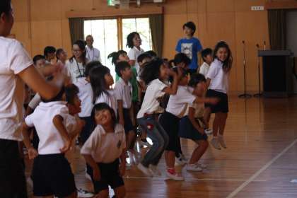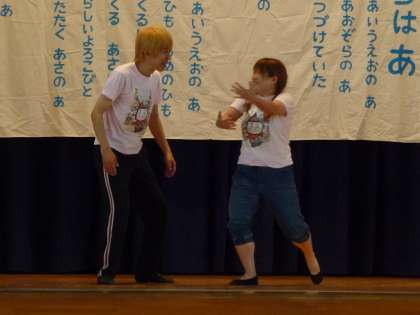 東京から3人のこんにゃく座の団員さんが来校して、オペラと演劇の違い、こんにゃく体操、歌の紹介などを実演を通して教えてくれました。