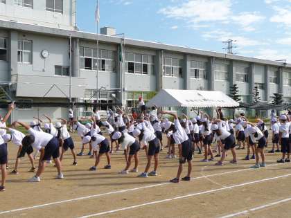今日はラジオ体操、整理体操、閉会式の練習をしました。