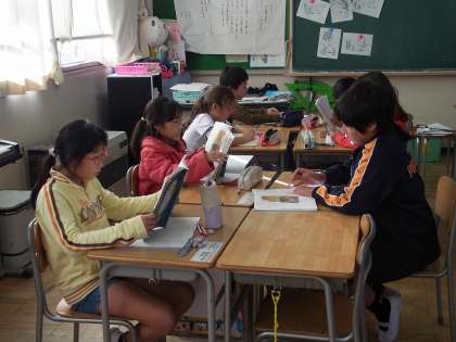 5年生が国語の時間に「大造じいさんとがん」の場面読みをしていました。