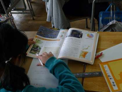 5年生が社会の時間に水産業の重要語句とグラフの読み取りをしていました。