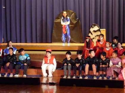 4年生の劇を3年生が見に来ました。