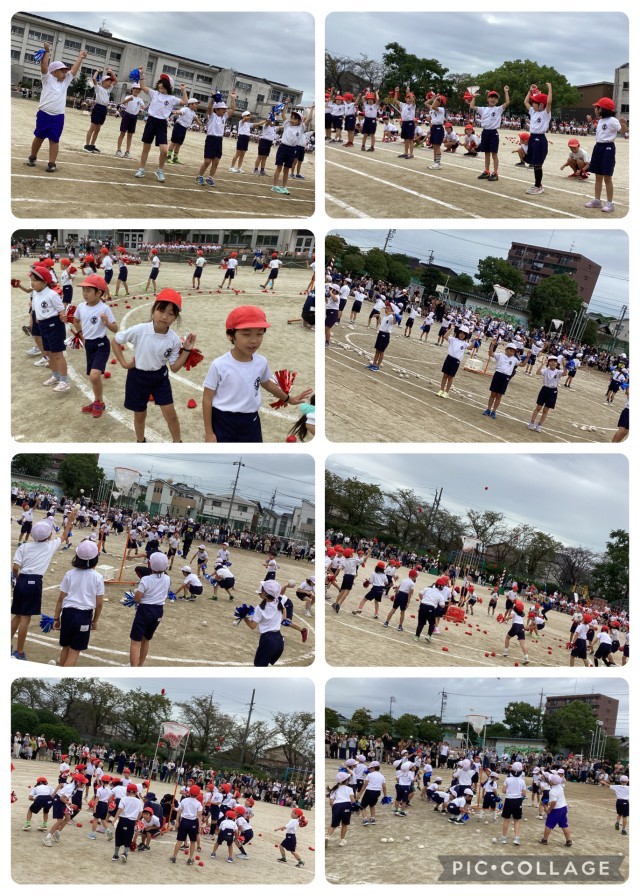 オープニングは1・2年生のダンシング玉入れです!