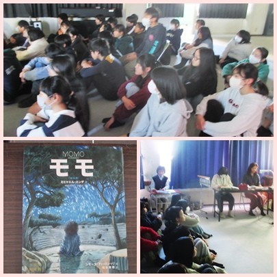 1組は国語「ぼくのブック・ウーマン」。本を読んだことがなかった主人公カルが、ブック・ウーマンの献身的な姿と本の力に触れ、心を動かされていく物語を、時代背景や文化の違いを想像しながら読み進めます。