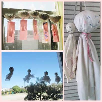 廊下や教室には子どもたち手作りの「てるてる坊主」が飾られています。