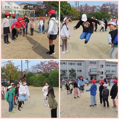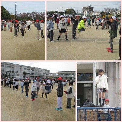 ペア学年で、高学年が低学年に優しく跳び方を教えたり、跳ぶタイミングを声掛けしたりする姿がたくさん見られました。
