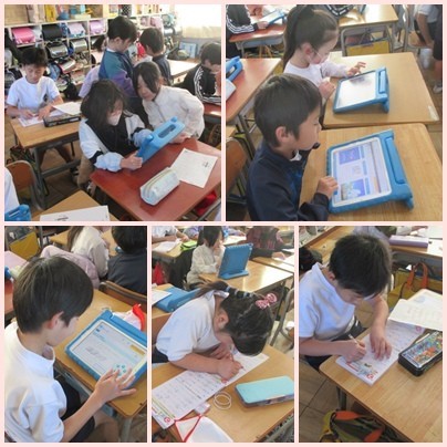 ドリル学習を進めたり、タブレットで復習したりして、この後行われる漢字小テストに備えます。