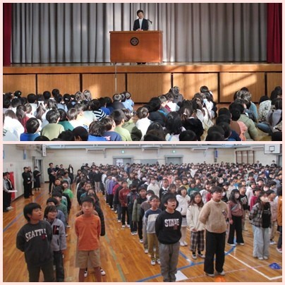 校長の話では2学期の生活や学習を振り返り、冬休みは「自分にできることをふやす」「安全に過ごす」ことを心がけ、2026年が「うまく」スタートできるよう楽しい冬休みを過ごして欲しいと伝えました。