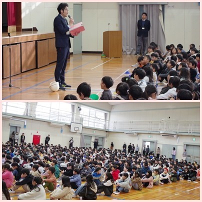 生徒指導の先生からは「自転車の乗り方について ヘルメットは正しくかぶる 無灯火は危険 停止線で安全確認 並走やながら運転は危険」「お金の使い方 プレゼントや大きなお金をもらう時期だからこそ大人と一緒に使い方を考えよう」「あいさつを引き続き元気に交わしていこう」など気を付けたいことを3つにまとめたお話がありました。