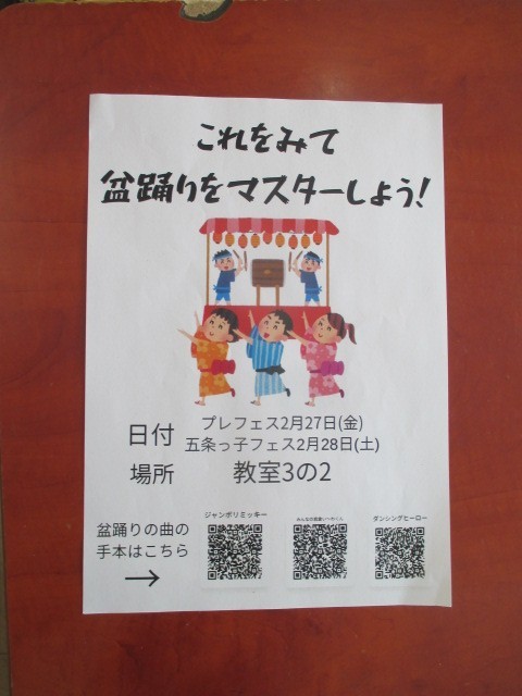 ポスターを作成し、踊りのお手本をQRコードで紹介しています。動画をご覧いただき、ご参加ください。