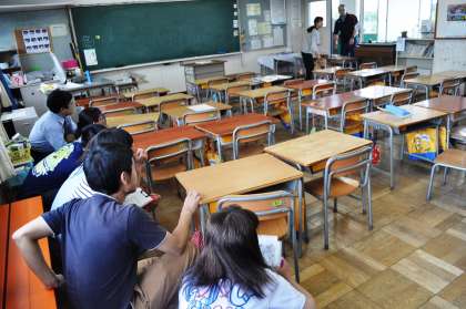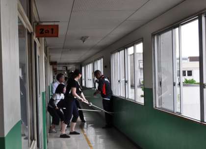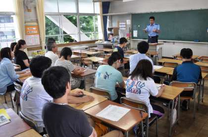 一斉下校後、江南警察署生活安全課の方に来ていただき、学校に不審者が来た場合の対応訓練を行いました。「どんな声かけをするか」「どんな対応をするか」「子どもたちをどう守るか」など、場面を想定しての訓練でしたが、とっさに反応ができず戸惑う場面もあり、シミュレーション訓練の大切さを実感しました。くしくも大阪の池田小学校の事件から15年、改めて不審者への対応について考えるよい機会となりました。