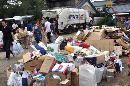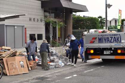 先週延期になったPTA資源回収を行いました。各地区でずいぶん多くの新聞、雑誌、段ボール、アルミ缶、牛乳パックなどが集まりました。