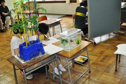 5時間目に特別支援学級(のぞみ)の1・2年生の国語の授業を公開しました。市内小中学校、保育園・幼稚園の先生、療育支援センター、あゆみの家、保健センター職員など多くの方々に授業を見ていただきました。授業後には、環境整備、教師の支援、指導の工夫などについて参加者で意見交換をしました。今後の指導・支援に役立つ学びを得ることができました。