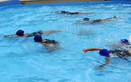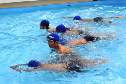 プールでの水泳の授業が始まりました。くもり空でしたが、2年生が小プールに入りました。今年初めてなので、水の慣れることから始まり、伏し浮き、けのびなどをやっていました。みんな気持ちよさそうで、プールでの授業を楽しんでいました。