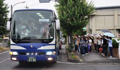 多くの保護者の方々に見送られ、バスが五条川小学校を出発しました。安全に気をつけ、仲間と支え合いながら、楽しい2日間を過ごしてほしいものです。朝早くから見送りに来ていただいた保護者の皆さま、ありがとうございました。