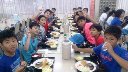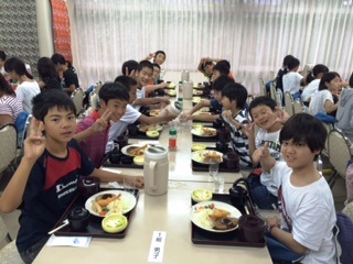 金閣の見学を終え、西陣織会館へ移動しての昼食です。昼食は、ハンバーグ定食です。みんなで「いただきます!」