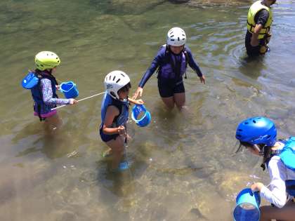 2グループに分かれて体験です。半分は、水中観察や魚とりなど水遊びをしています。