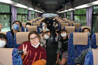 7時30分にバスに乗り、7時40分奈良に向けて出発しました。奈良方面に大雨警報が出ていますが、暴風警報は出ていません。予定どおり進めようと思います。