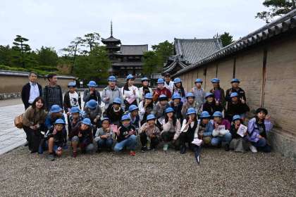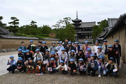 法隆寺に到着しました。曇っていますが、雨は上がっています。