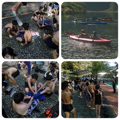 無事にカヌー体験が終了しました。次は、魚つかみ体験です。