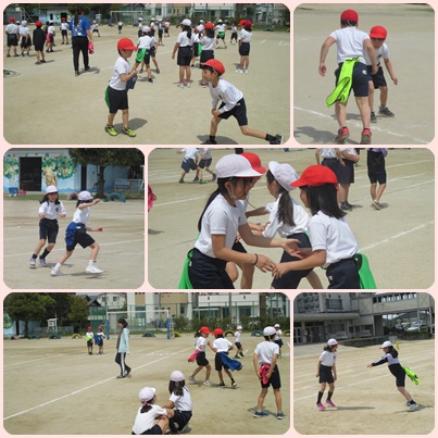 3年生の体育の様子です。6年の先生が教科担任として一緒に授業を進めてくれます。今日は体づくりの運動を中心に行いました。たくさん運動し、たくさん汗をかきました。