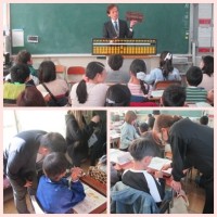 4時間目、運動場で3・4年生がエイサーの練習をしています。隊形移動を入れて、動きを大きく、声を合わせて、演技をしています。ペットボトルをたたく音、途中で入れるかけ声がそろっていて、素敵です。
