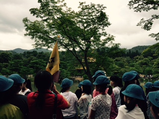 金閣に着きました。修学旅行や観光やたくさんの人で賑わっています。天気も今の所雨に降られずに見学することができました。