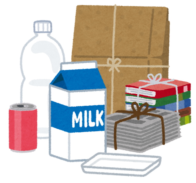 ・回収品目 新聞、雑誌、本、段ボール、古着、アルミ缶、雑紙、牛乳パック