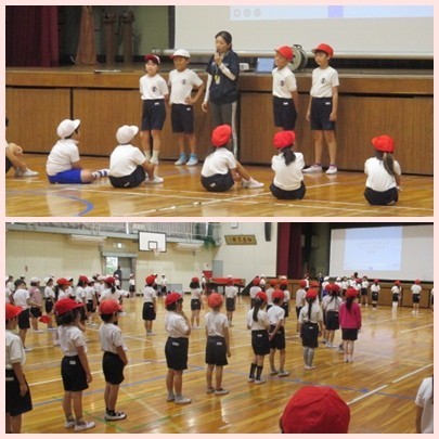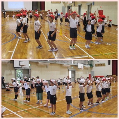 「ダンシング玉入れ ~ミッキーバージョン~」の練習を2年生がリードしながら、笑顔で楽しく進めます。
