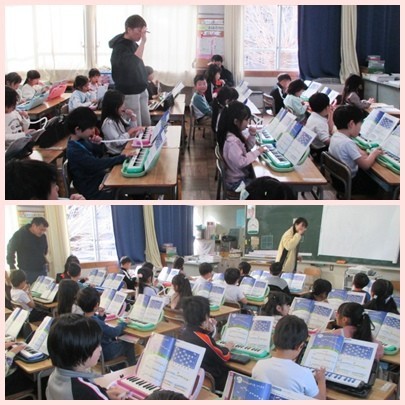 鍵盤ハーモニカで指くぐりに苦戦しながら「きらきらぼし」を練習します。