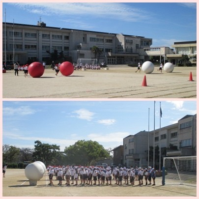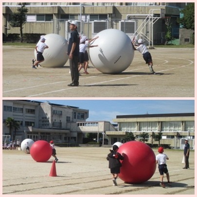 4年生は運動会で3年生と一緒に大玉を使った競技を行います。