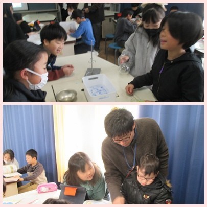 4年生の理科の授業の様子です。実験を通してものの温度と体積について考えます。