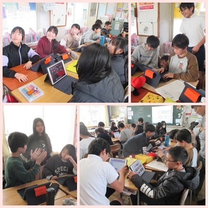 1組は国語「ぼくのブック・ウーマン」。本を読んだことがなかった主人公カルが、ブック・ウーマンの献身的な姿と本の力に触れ、心を動かされていく物語を、時代背景や文化の違いを想像しながら読み進めます。