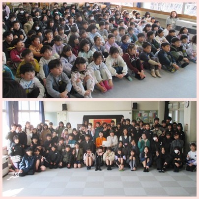 『時間とは、いのちだからです。そして、いのちは心にやどっているのです。』『小さなモモがだれよりも得意だったのは、ほかの人の話を聞くことでした。ほんとうによく話を聞けるのは、ごくわずかな人だけです。』卒業を迎える6年生にむけたメッセージが伝わるひと時となりました。絵本版の美しい『モモ』を聞いた後は、ぜひ翻訳書籍版の『モモ』を手にとってみてください。