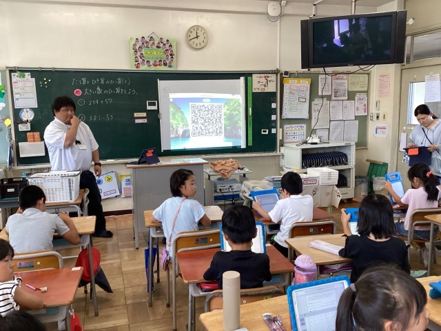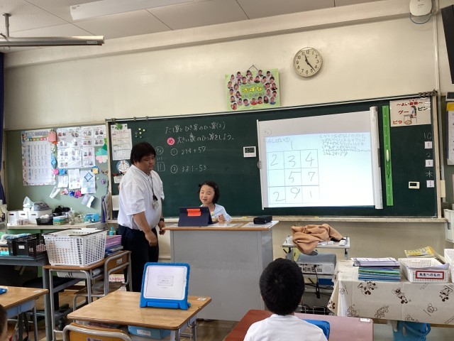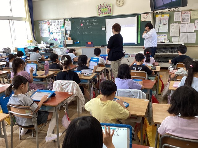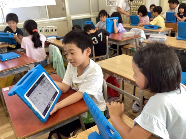 タブレットを使って、計算の仕方をお互いに伝えていました。